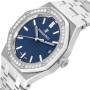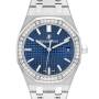 Audemars Piguet Royal Oak 37mm Steel Diamond Mens Replica Watch 15451ST Box Card. Automatic self-winding movement. Brushed with polished bevel edges stainless steel case 37.0 mm in diameter. Case thickness 9.80mm. Exhibition transparent sapphire crystal case back. Stainless steel original Audemars factory diamond bezel punctuated with 8 signature screws. Scratch resistant sapphire crystal. Blue dial with an Grande Tapisserie waffle design. Applied steel index hour markers and hands with luminescent fill. Date window at 3 o'clock aperture. Stainless steel bracelet with push button double deployant clasp. Fits 6 3/4" wrist.