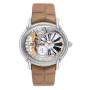 Bracelet: Tan leather strap with 18K white gold tang buckle.