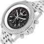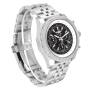 Dial: Black dial with luminescent stainless steel outlined hands. Large red-tipped central seconds hand with Breitling logo counterweight. Date calendar window between 4 and 5. Three chronograph subdials - 60 seconds, 15 minutes, and 6 hours.