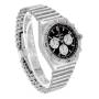 Dial: Black dial with baton hour markers. Three silver chronograph subdials - running small seconds, 30 minutes, and 12 hours. Luminous baton hands and hour markers. Tachymeter scale around the outer rim. Date display at 6 o'clock.