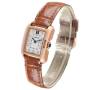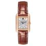 Bracelet: Brown leather strap with an 18K rose gold tang buckle.