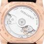 Bracelet: Black leather strap with an 18k rose gold deployant clasp.