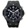 Dial: Black dial with alternating index hour markers and arabic numerals. Luminous skeleton hands. Large red central seconds counter with the "H" logo as a counter-weight. Red minute markers around the outer rim. Date window between the 4 and 5 o'clock aperture. Subdials - 60 seconds, 30 minutes and 12 hours.