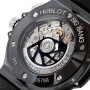 Case: Black ceramic case 44.0 mm in diameter. Exhibition case back. Stainless steel and kevlar pushers and fluted crown.