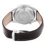 Bracelet: Black leather strap with a stainless steel deployant buckle.