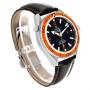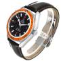 Dial: Black dial with luminescent index hour markers and broad arrow hands. Orange arabic numerals at 3,6,9 and 12. Orange-tipped centre sweeping seconds hand. Outer stick minute markers. Date calendar window at 3 o'clock aperture.