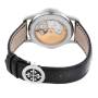 Bracelet: Black leather strap with an 18K white gold deployant clasp.