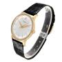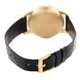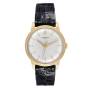 Bracelet: Black leather strap with an 18k yellow gold tang buckle.