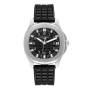 Bracelet: Black rubber strap with a stainless steel deployant clasp.