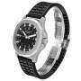 Dial: Embossed black dial with Arabic numerals. Luminescent sword-shaped hands and index hour markers. Center sweep seconds hand. Date calendar at the 3 o'clock aperture.