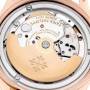 Case: 18k rose gold round case 38.0 mm in diameter. Transparent exhibition sapphire crystal caseback. Patek Philippe logo on the crown.