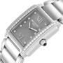 Replica Patek Philippe Twenty-4 Steel Diamond Ladies Quartz Watch 4910A Paper. Quartz movement. Stainless steel rectangular case 25.0 x 30.0 mm. Crown set with an onyx. Stainless steel original Patek Philippe factory diamond bezel. Scratch resistant sapphire crystal. Silver dial with original Patek Philippe factory diamond hour markers and luminescent white gold baton hands. Raised Roman numerals at VI and XII. Stainless steel bracelet with a hidden clasp with the Patek Philippe logo. Fits a 6 1/4" wrist.