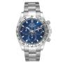 Dial: Blue dial with white gold baton hands and luminescent baton hour markers. Minute and 1/5-second markers around the outer rim. Three subdials - running small seconds and the 30-minute and 12-hour chronograph registers.