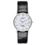 Rolex Cellini Classic White Gold Mother Of Pearl Dial Mens Watch. Manual winding movement. 18k white gold slim case 31.8 mm in diameter and 5.5mm thick. Rolex logo on the crown. . Scratch resistant sapphire crystal. Flat profile. Textured mother of pearl dial with raised Arabic numeral hour markers and white gold dauphine hands. Black alligator leather strap with an 18k white gold tang buckle.