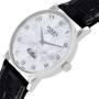 Dial: Textured mother of pearl dial with raised Arabic numeral hour markers and white gold dauphine hands.