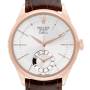 Bracelet: Brown alligator strap with 18K rose gold tang buckle.