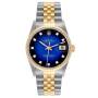 Dial: Blue vignette dial with original Rolex factory diamond hour markers and yellow gold baton hands. Date calendar at the 3 o'clock aperture.