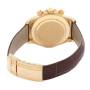 Bracelet: Brown leather strap with 18K yellow gold deployent buckle.