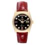 Bracelet: Red leather strap with 18k yellow gold deployant clasp.