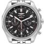 Breitling Bentley Barnato 49mm Steel Mens Watch. Automatic self-winding officially certified chronometer movement. Chronograph function. Stainless steel case 49.0 mm in diameter. Stainless steel pushers and screwed-down crown. Exhibition transparent sapphire crystal caseback. Bi-directional rotating stainless steel bezel. Scratch resistant sapphire crystal. Black dial with luminescent stainless steel outlined hands. Tachymeter on the chapter ring. Three chronograph sub-dials - 1/8th of a second chronograph, 30 second, 15 minute and 6 hour. Date calendar window between 4 and 5. Stainless steel bracelet with flip lock clasp. Fits 8.5" wrist.