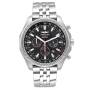 Dial: Black dial with luminescent stainless steel outlined hands. Tachymeter on the chapter ring. Three chronograph sub-dials - 1/8th of a second chronograph, 30 second, 15 minute and 6 hour. Date calendar window between 4 and 5.