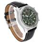 Dial: Green dial with luminous hands and Arabic numerals. 3 chronograph subdials - 60 second, 30 minute, and 12 hour. Day and Date display at 3 o'clock.