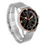 Case: Stainless steel round case 44.0 mm in diameter. Two pushers operate the chronograph functions. Breitling logo on the crown.