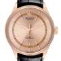 Bracelet: Brown alligator leather strap with an 18K rose gold tang buckle.