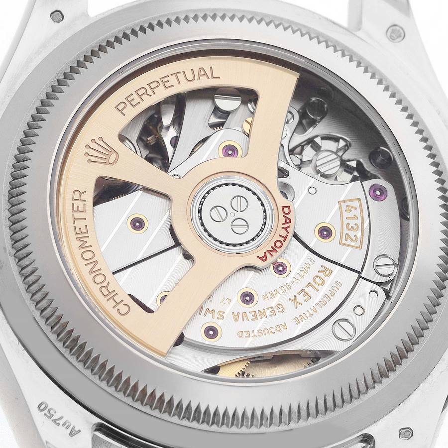 Case: 18k white gold oyster case 40.0 mm in diameter. Two screw-down pushers operate the chronograph functions. See through scratch-resistant sapphire crystal case back. Pointed crown guards. Replica Rolex logo on the screw-down crown.