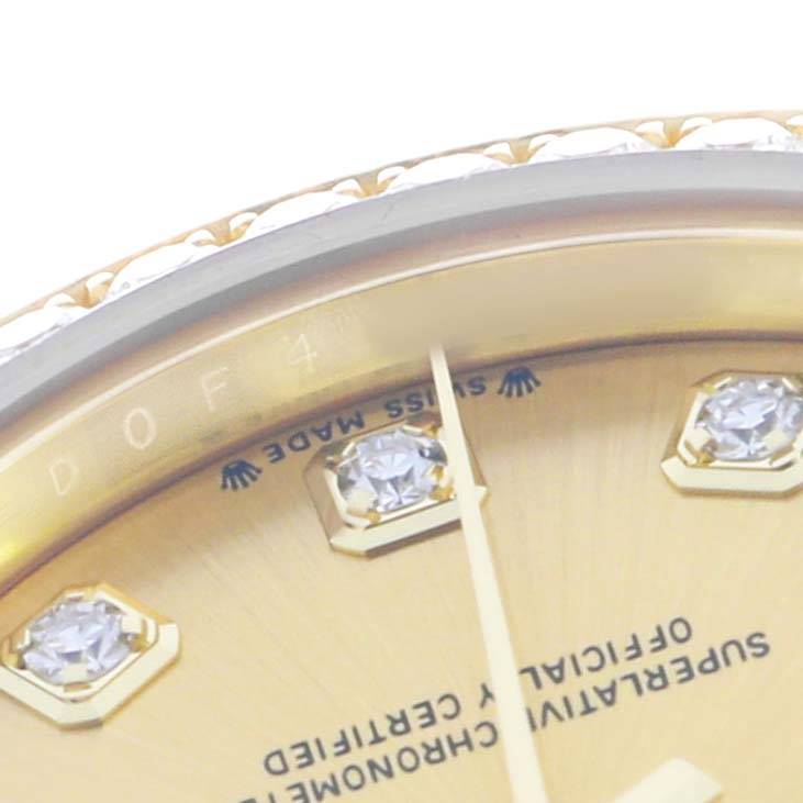 Dial: Champagne dial with original Rolex factory diamond hour markers. Date window at 3 o'clock.
